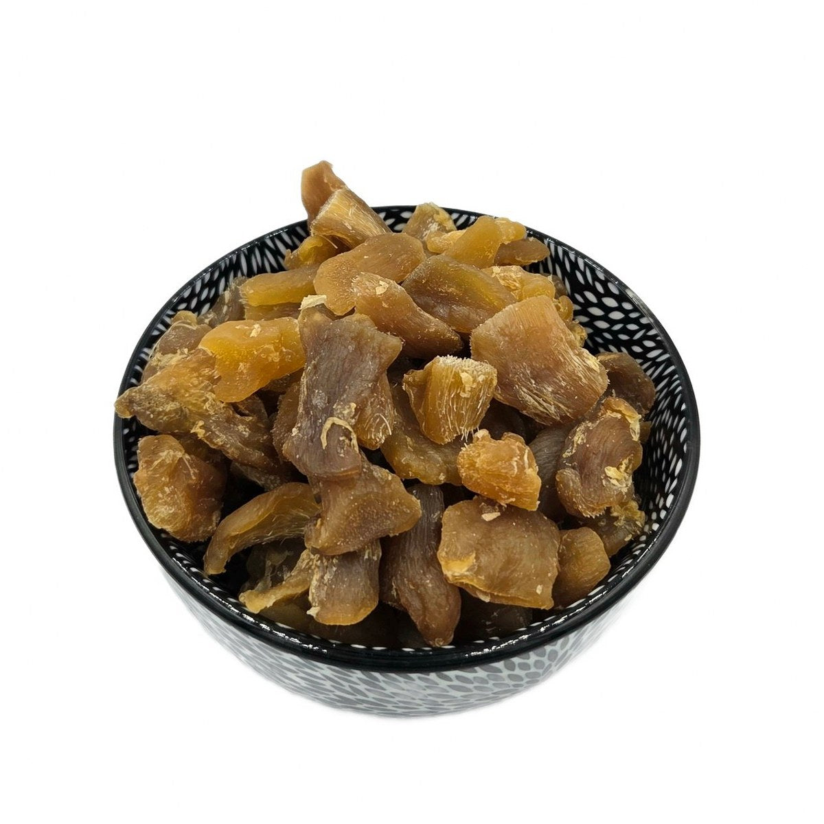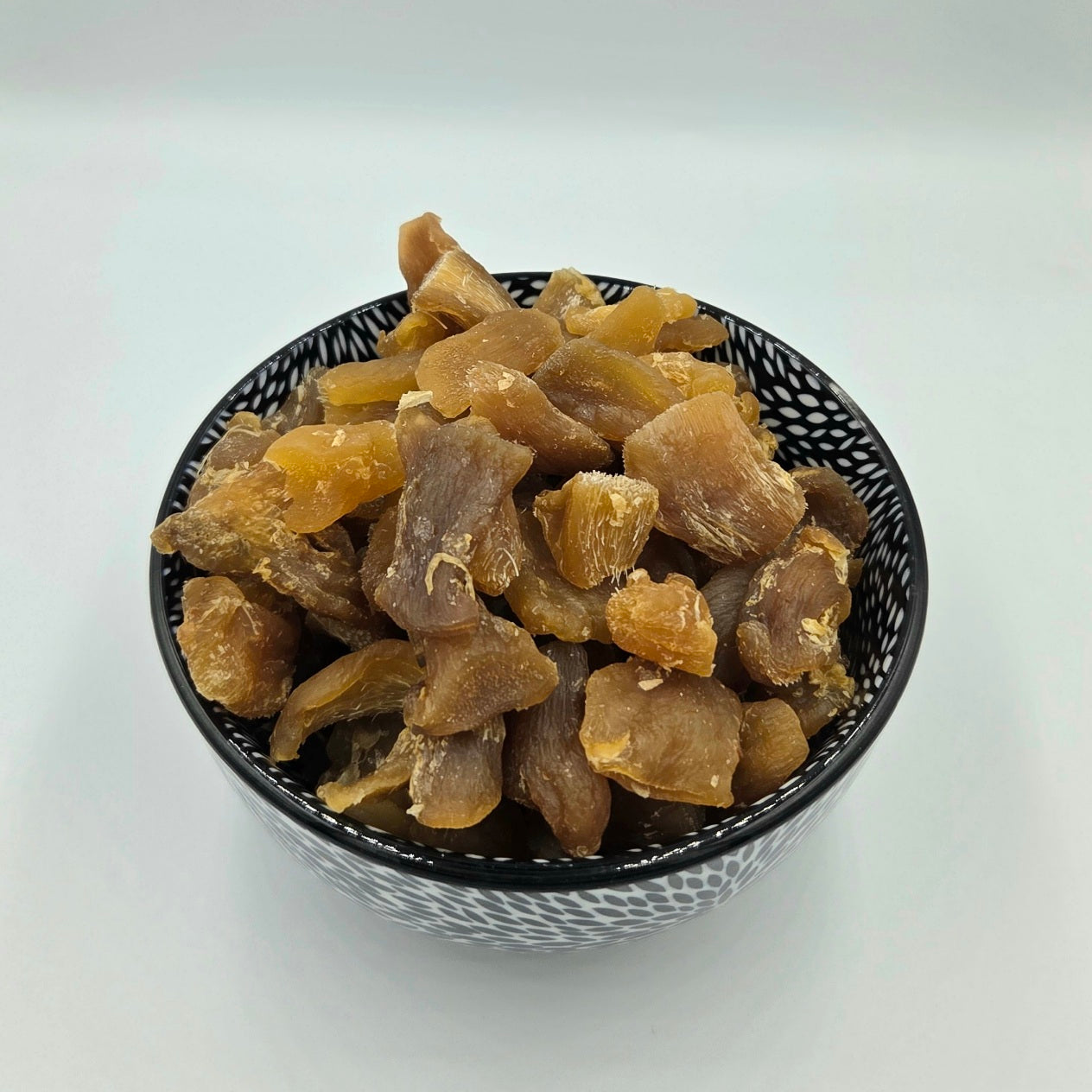 Το αποξηραμένο τζίντζερ σε κομμάτια είναι ένα φυσικό προϊόν υψηλής ποιότητας, ιδανικό για όσους αναζητούν υγιεινές εναλλακτικές στα σνακ και τα μπαχαρικά. Παρασκευάζεται από φρέσκο τζίντζερ που αφυδατώνεται προσεκτικά για να διατηρήσει τη φυσική του γεύση και τα θρεπτικά συστατικά, χωρίς προσθήκη ζάχαρης. Το προϊόν μας αποτελείται από 90% αφυδατωμένο τζίντζερ και φρουκτόζη, ενώ μπορεί να περιέχει ίχνη διοξειδίου του θείου. Είναι ιδανική επιλογή για οικογένειες ή λάτρεις της μαγειρικής που θέλουν να απολαύσουν τα οφέλη του τζίντζερ όλο τον χρόνο. Ανακαλύψτε τη φυσική δύναμη του τζίντζερ και ενισχύστε τη διατροφή σας με αυτό το πολυλειτουργικό προϊόν, που συνδυάζει γεύση και υγεία σε κάθε μπουκιά.