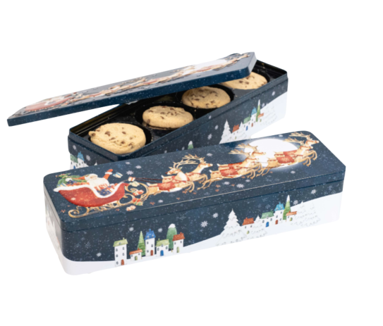 Απογειώστε τη γιορτινή σας διάθεση με το υπέροχο κουτί μας σε σχήμα Άγιου Βασίλη, γεμάτο με λαχταριστά μπισκότα σοκολάτας. Κάθε μπισκότο είναι χειροποίητο με αγάπη, χρησιμοποιώντας μόνο τα καλύτερα υλικά. Απολαύστε τη γεύση της κλασικής σοκολάτας σε κάθε μπουκιά.